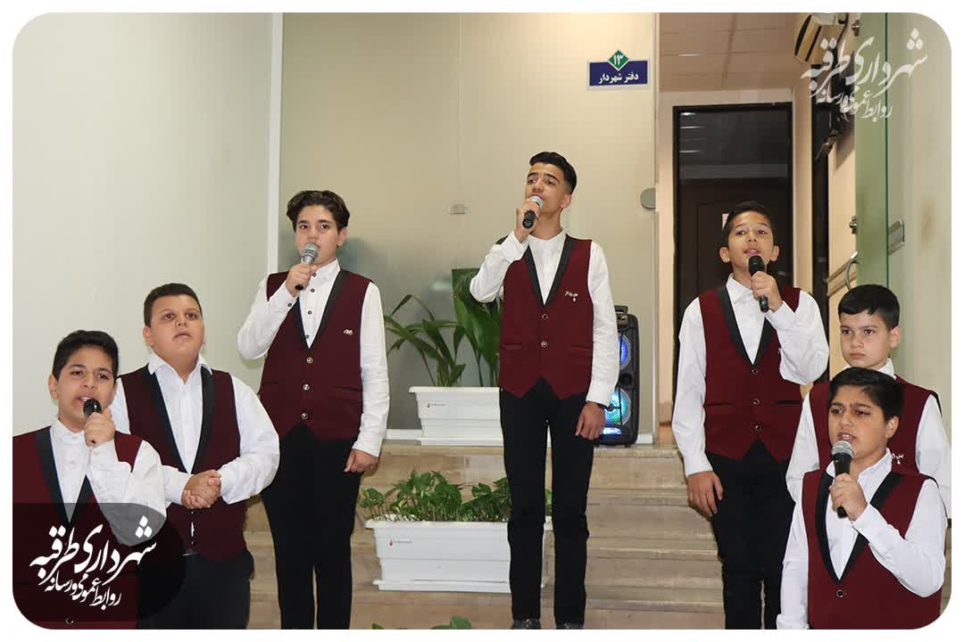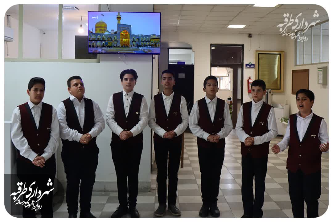 اجرای سرود امام رضایی به مناسبت میلاد حضرت امام رضا (ع) در ساختمان شهرداری طرقبه