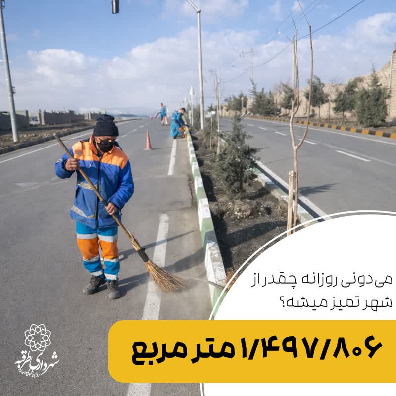 فقط در یک روز: بیش از ۱,۴۹۷,۸۰۶ متر مربع با دستهای زحمتکش پاکبانان شهر شهری تمیز، حاصل احترام به کارگران شهر روابط عمومی و رسانه شهرداری طرقبه